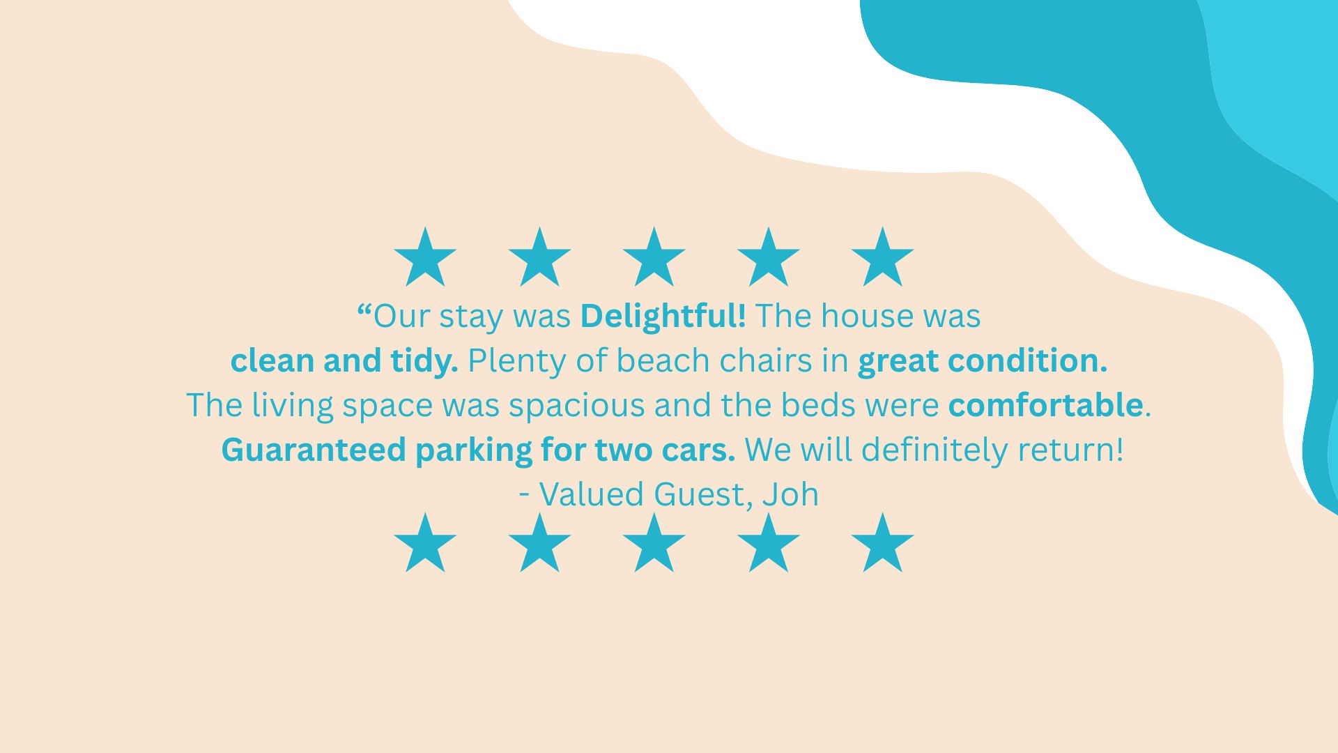 ✔ Beach Ready: Complimentary beach chairs, towels, 12 beach tags, wagon, and toys for stress-free fun.
